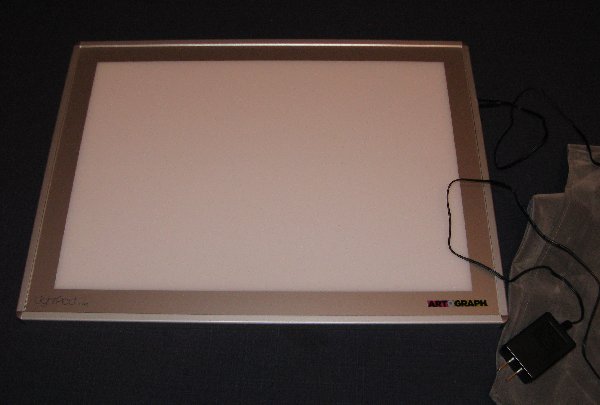 This light box is only 3/4″ thick and comes with a nice velvety storage bag. You can get them in several sizes but I thought 12″ x 17″ would serve my purposes best. It uses a halogen light bulb so should last many years.