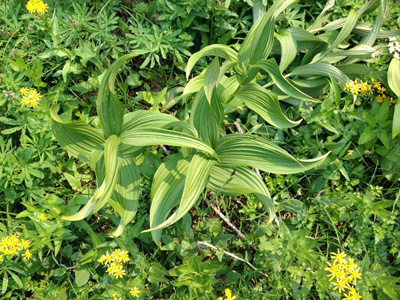 The next ‘old friend’ I met was a Corn Lily, Veratrum viride, which I have long desired to know better. I painted a leaf from a small nursery specimen for my SBA leaf assignment but had not yet seen the plant in flower or in its native environment. It’s another stunning beauty that I want to study and paint in greater detail in the future.