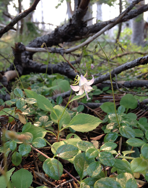 Because of time constraints during the course, I couldn’t always search out a specimen to study in its native habitat, but usually purchased one from a nursery specializing in native plants. My purchased plant is now thriving in my garden and is even propagating itself nicely, so I should have some to give away soon. Although I know the plant fairly well, I found it stunning in its rocky, dry home in the forest.