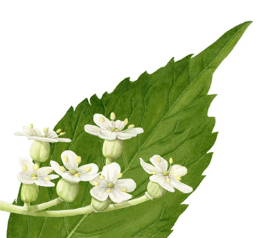 Elderberry (Sambucus nigra) “The elderberry blossom is good for colds and flu. It’s sold at the drug store as Sambucol.”